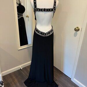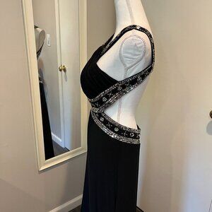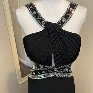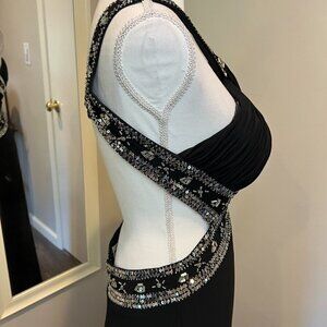 Betsy & Adam Black Sequined Front cross Cut Out Gown, Size 10