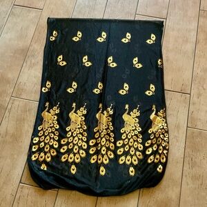 Black Organza Oblong Scarf with Gold Peacocks