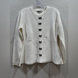 Super cute, cream sweater with dainty bow detail.