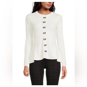 Nanette Lepore Peplum Sweater with Bow Buttons