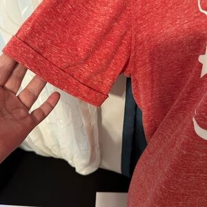 Stylish red short sleeve tee featuring a bold graphic design. Perfect for casual outings.
