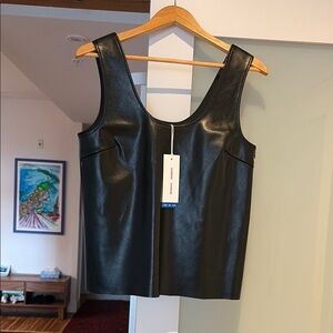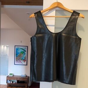 Sleek black leather tank top/vest. Perfect for a chic look.