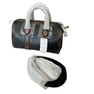 Coach Loved Leather Compass 25 Duffle Bag Black Tan Zip Top Detachable Strap NWT
