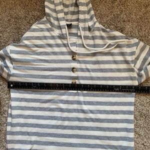 Emery Rose Pullover Women's Small Long Sleeve Shirt Gray White Stripe Hood