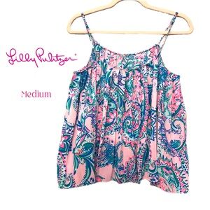 Lilly Pulitzer Rein Pleated Tank in Pink Tropics Print