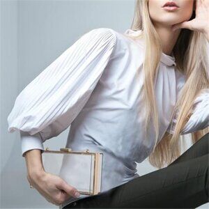 *This hard box handbag is made of sturdy acrylic material and golden metallic kiss-lock closure (Please note that a faint smell are natural and unique to each item and will soon fade with use).