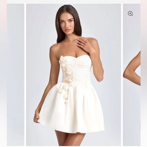 Oh Polly Bandeau Floral-Appliqué Corset Mini Dress Cream White Ivory 0 (XS)