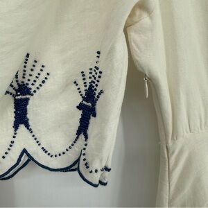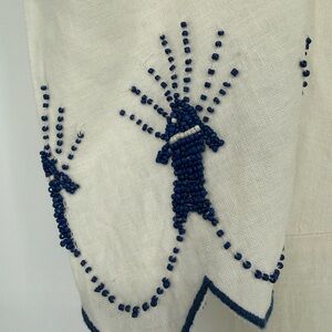 Farm Rio Sea of Fish Maxi Linen blend Dress beaded small NWT