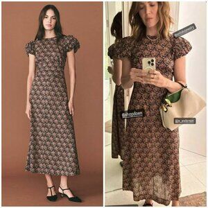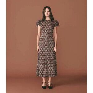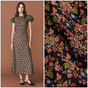 💕DÔEN💕 Rhodia Dress ~ Puff Sleeve A-Line Maxi Noir Forest Floral Print XL NWOT