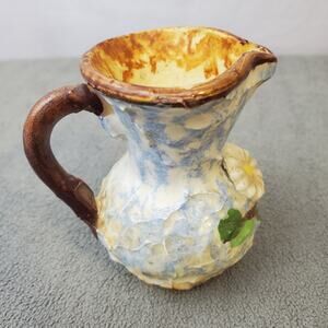 Vintage Dulane Hand Painted Ceramic Minature Pitcher Floral Accents Italy Made