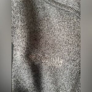 Columbia full-zip jacket in charcoal. Features zippered chest and side pockets.