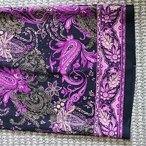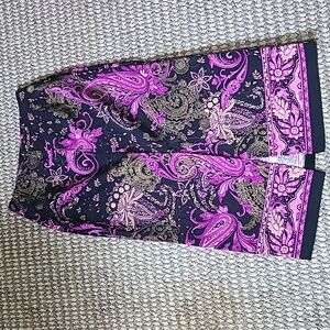 Chic skirt with a bold paisley design. Features rich purple and black colors.