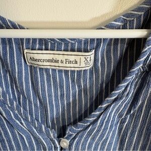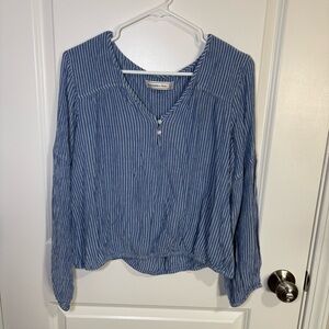 Y2K Abercrombie & Fitch Blue Striped Henley Women's Long Sleeve Top