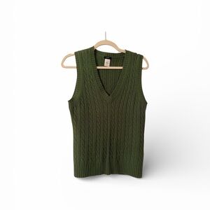J Crew Wool Blend V-Neck Green Sweater Vest
