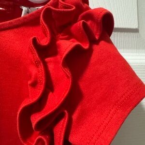 Vibrant red tee with playful ruffle sleeves. Stylish and fun for any occasion.