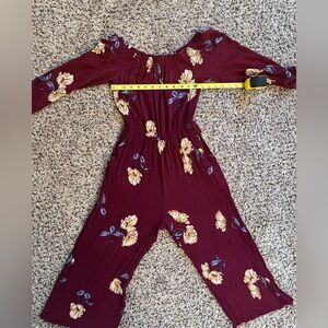 Love, Fire Burgundy Floral Long Sleeve Jumpsuit – Elegant & Flowy