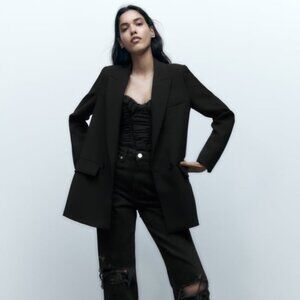Zara Flowy Oversized Suit Blazer in Black Slouchy Menswear-inspired Women's XL