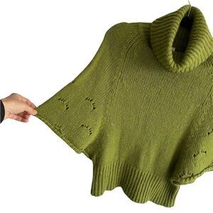 BIJU Wool Chunky Knit Turtleneck Pullover Sweater Wide Sleeves Green XS/S