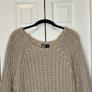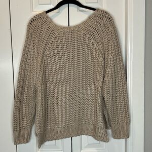 Classic tan sweater with larger knit and wide crew neckline. Great dressed up or down. Size small