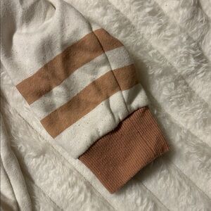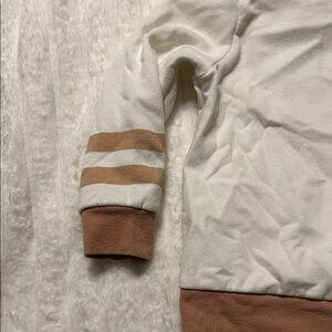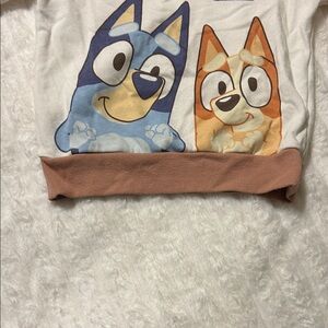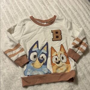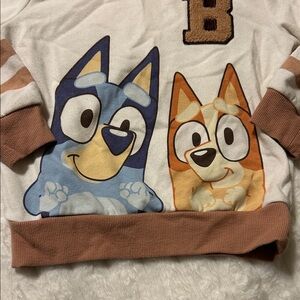 Bluey and Bingo on the front under a fuzzy fabric and embroidered letter "B" with brown hues that are perfect for the winter season. The classic fit makes it easy to layer, and the brown stripes on the sleeves completes the design. This fabric is ultra soft and snuggly!