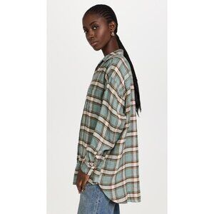 Frank & Eillen Finbar Flannel Button Up Shirt Green Plaid Womens Size M Linen