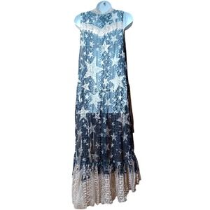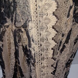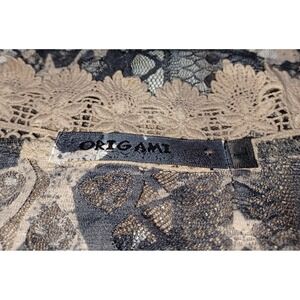 Origami Lace Hi Low Vest Womens L Boho Star Taupe Black Boho Western Layering