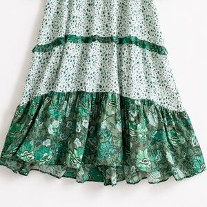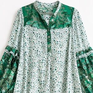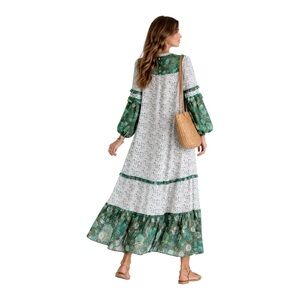 R Vivimos Green Floral Boho Maxi Dress Size L 12/14 Long Sleeve Side Slit