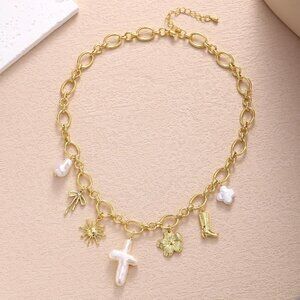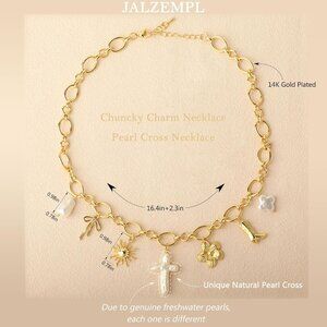 14K Gold Chunky Charm Necklace The pearl cross necklace are made from genuine freshwater pearls, and due to natural characteristics, each one is different. A versatile style for all occasions that adds a touch of elegance and beauty to your everyday outfits.