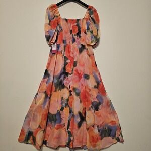 Vince Camuto Women Dress Size 10 Fits Medium Midi Floral Round Neck Short Sleeve
