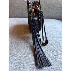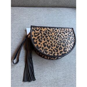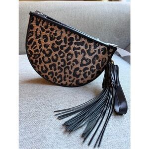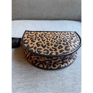 Poolside Bags Leopard Print Raffia Clutch New