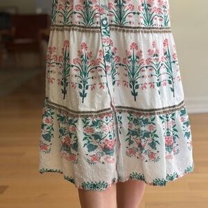 Anthropologie Kindred Size Medium White Green Pink Embroidered Floral Midi Dress