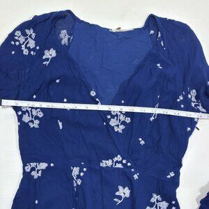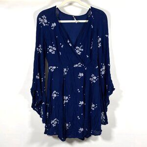 Free People Jasmine Embroidered Bell Sleeve Mini Dress Navy - Size 4