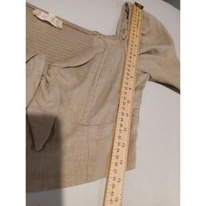 Altar'd State Tan Linen Blend Tie Front Puff Sleeve Crop Top Womans Medium