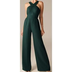 AW BRIDAL 2 XS Dark Emerald Green Lorraine party wide leg jumpsuit NEW B41