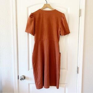 DOWNEAST Button Front Puff Sleeve Midi Dress
