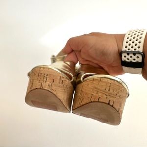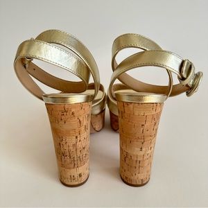 Veronica Beard Gold Lalana Leather Ankle Strap Cork Platform Heel Sandal 6.5 NIB