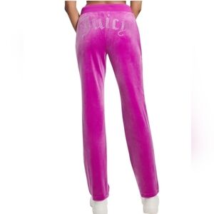 Our iconic Y2K "Juicy" embellishment brands the back of these velour pants and gives them a luxe twist. Set the vibe by pairing with your choice of jacket, tank, or statement tee.