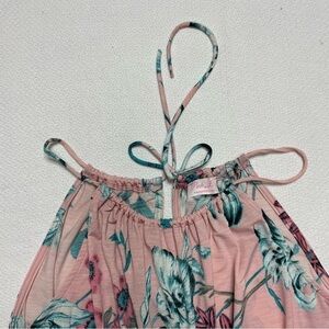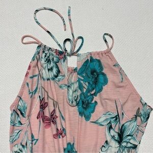 Pink Lily Women's Romper Spaghetti Straps Pink Blue Tropical Flowers Size M/L