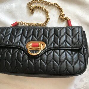 RALPH LAUREN Quilted GENUINE BABY LAMB LEATHER/Golden Chain Shoulder Bag Purse