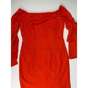 Orange Off the Shoulder Ruffle Bell Sleeve Sheath Fitted Waist Dress Size 8