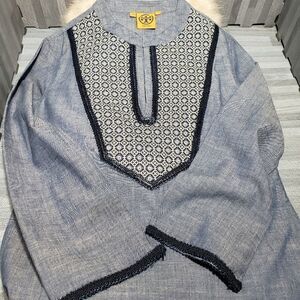 Tory Burch Womens Bernadette Tunic Top Cotton 3/4 Sleeves Faded Blue, size 6, great condition, see pictures for more details.