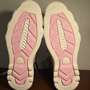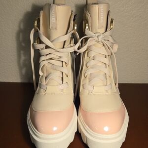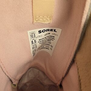 Chic and durable winter boots by Sorel. Beige and light pink design. Perfect for cold weather.