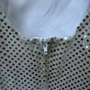 Vintage 90s Maurices Silver Sparkle Pailette Mini Dress Gown Party Glam Disco