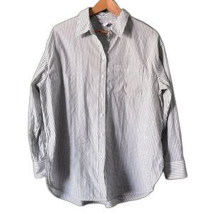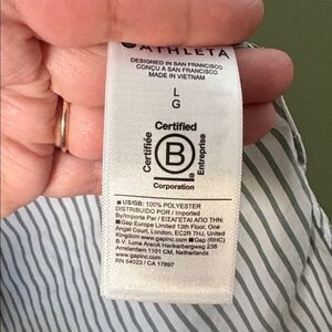 Athleta White Green Striped Button Down Long Sleeve Shirt Sz L