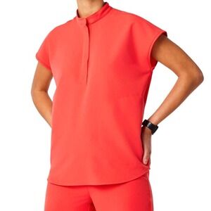 FIGS Rafaela Three-Pocket Scrub Top Women 3XL Red Technical Collection NWT. Short-sleeve scrub top with mandarin collar and hidden placket. Three-pocket design.