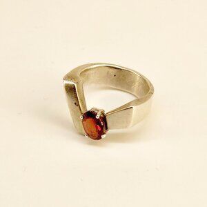 Hammered ring with garnet stone