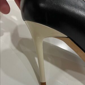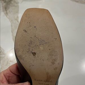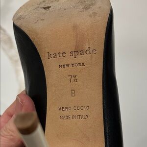 Elegant Kate Spade Black Leather & White acrylic 3.5” heel Crystal Embellishment