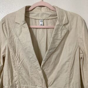 Vintage Y2K Cream Polka Dot 100% Cotton Mori Kei Feminine Blazer L Autumn Fall