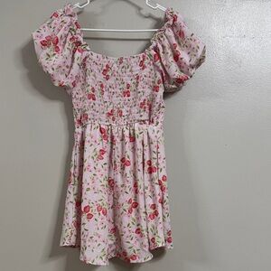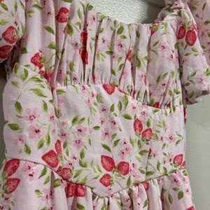 Adorable strawberry Blush Pink Floral Puff Sleeve Dress cottage core