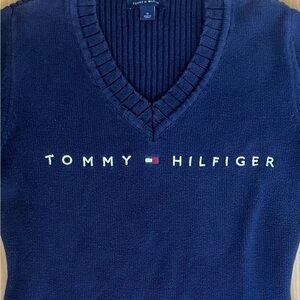 Vintage Y2K Tommy Hilfiger Women’s V-Neck Navy Sweater 100% Cotton